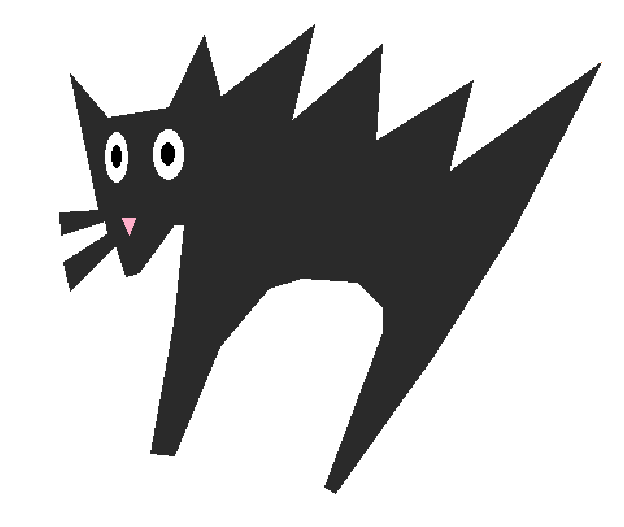 This features a black cat with a pink nose, standing on its hind legs and looking up. It appears to be an illustration or cartoon of the cat, possibly for use in a children's book or other educational materials. The cat is positioned towards the left side of the image, taking up most of the frame. Its body is depicted with a few black lines, giving it a simple and clean appearance.