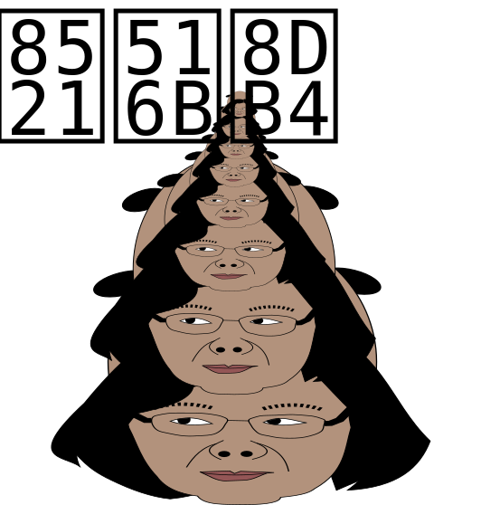 This features a woman with glasses, wearing a black shirt and looking at the camera. She is surrounded by multiple images of herself, creating an interesting visual effect. There are several instances of her face in various positions, all looking towards the viewer. The woman appears to be the central focus of the scene, while the other images create a unique and intriguing composition.