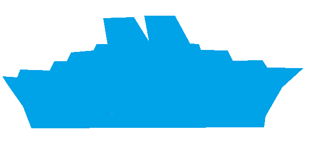 This features a large blue boat floating on top of the water. It is positioned in the center of the scene, taking up most of the space from left to right and almost covering the entire height of the image. The boat appears to be a cruise ship or a similar type of vessel, as it has multiple levels and a distinctive shape. The blue color of the boat contrasts with the surrounding water, making it stand out prominently in the scene.