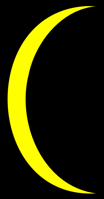 This is a completely free image A black and yellow moon with a white crescent that you can download, post, and use for any purpose.