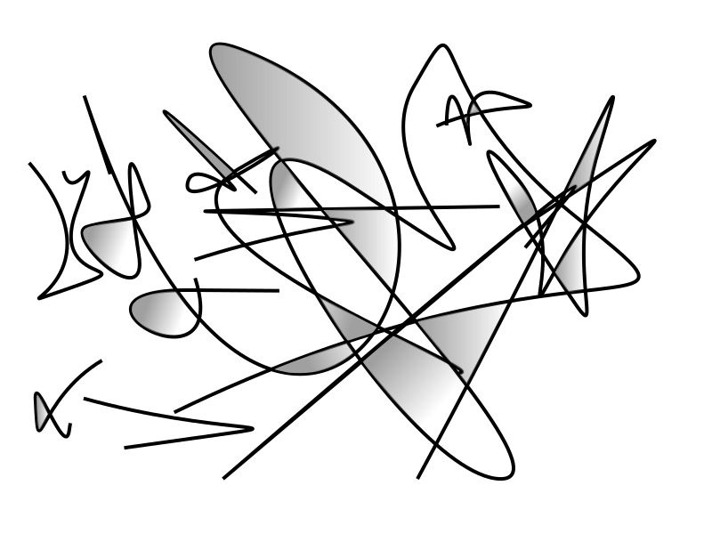 This is a black and white drawing of an abstract design. It features several curved lines that create a sense of movement and depth in the artwork. The lines are intertwined, creating a complex pattern that gives the impression of a swirling motion. The overall effect is one of intricacy and visual interest, as the viewer's eye is drawn through the various shapes and curves created by the artist's hand.