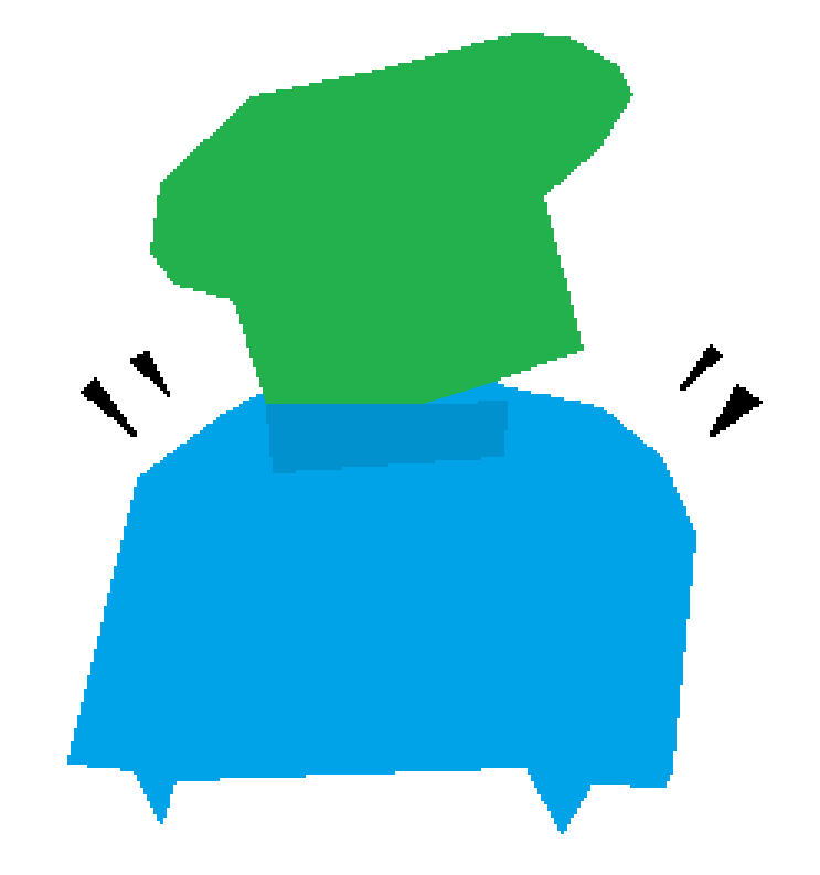 This features a cartoon toaster with green toast popping out. The toaster is blue and has a green top, giving it an interesting appearance. It appears to be a stylized drawing of a toaster, possibly for a children's book or a fun illustration. The toaster seems to be the main focus of the image, with no other objects or distractions visible in the scene.