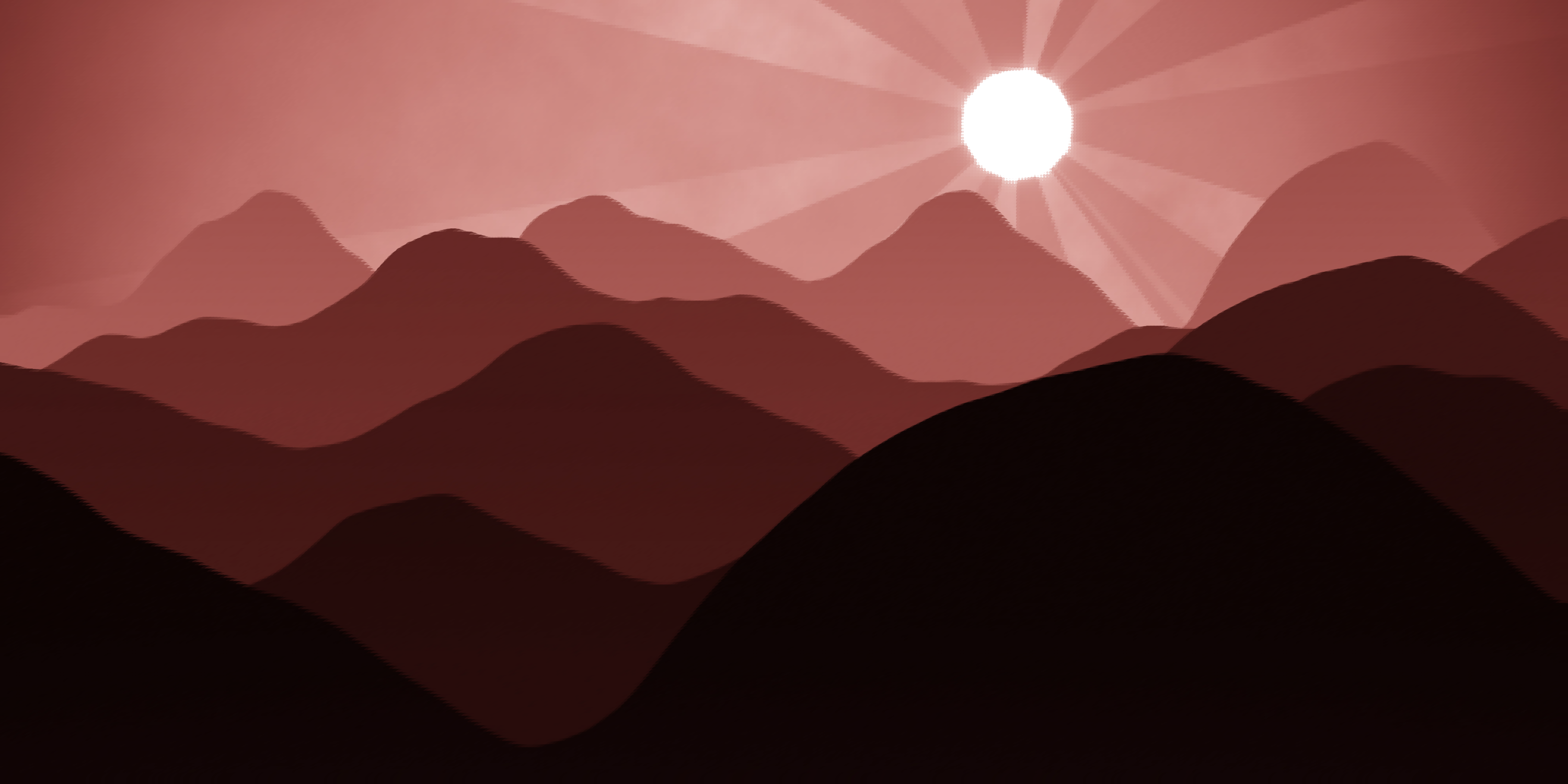 This features a beautiful mountain range with a sunset in the background. The mountains are covered in red and brown hues, creating an impressive visual effect. In the sky above the mountains, there is a large orange sun that appears to be setting behind them. This picturesque scene captures the essence of nature's beauty and tranquility.