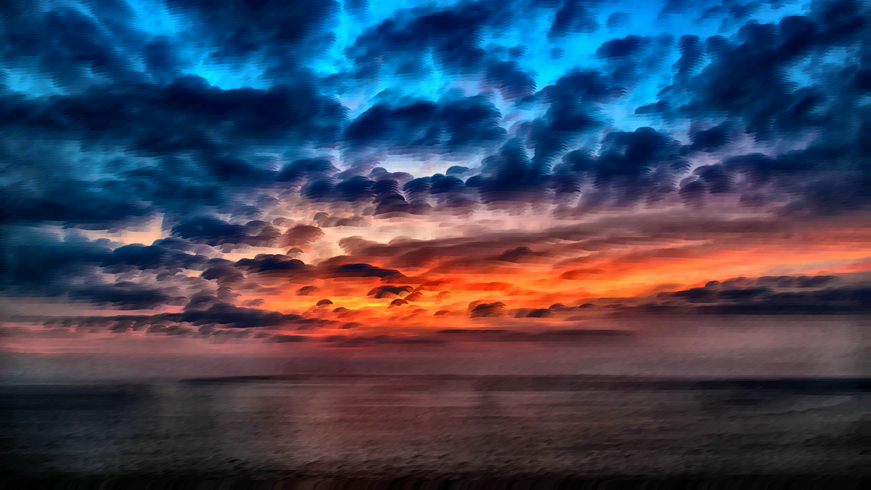 This captures a beautiful sunset over the ocean, with clouds in various shades of blue and purple creating an ethereal atmosphere. The sky is filled with these clouds, some closer to the horizon while others are higher up, giving the impression that they're floating above the water. The sun appears to be setting behind the clouds, casting a warm glow over the scene. The ocean itself is calm and serene, reflecting the tranquil mood of the moment. There are no boats or people visible in the image, allowing the viewer to focus on the natural beauty of the sunset and the vast expanse of water. The combination of the clouds, the sunset, and the ocean creates a picturesque scene that evokes feelings of peacefulness and relaxation.