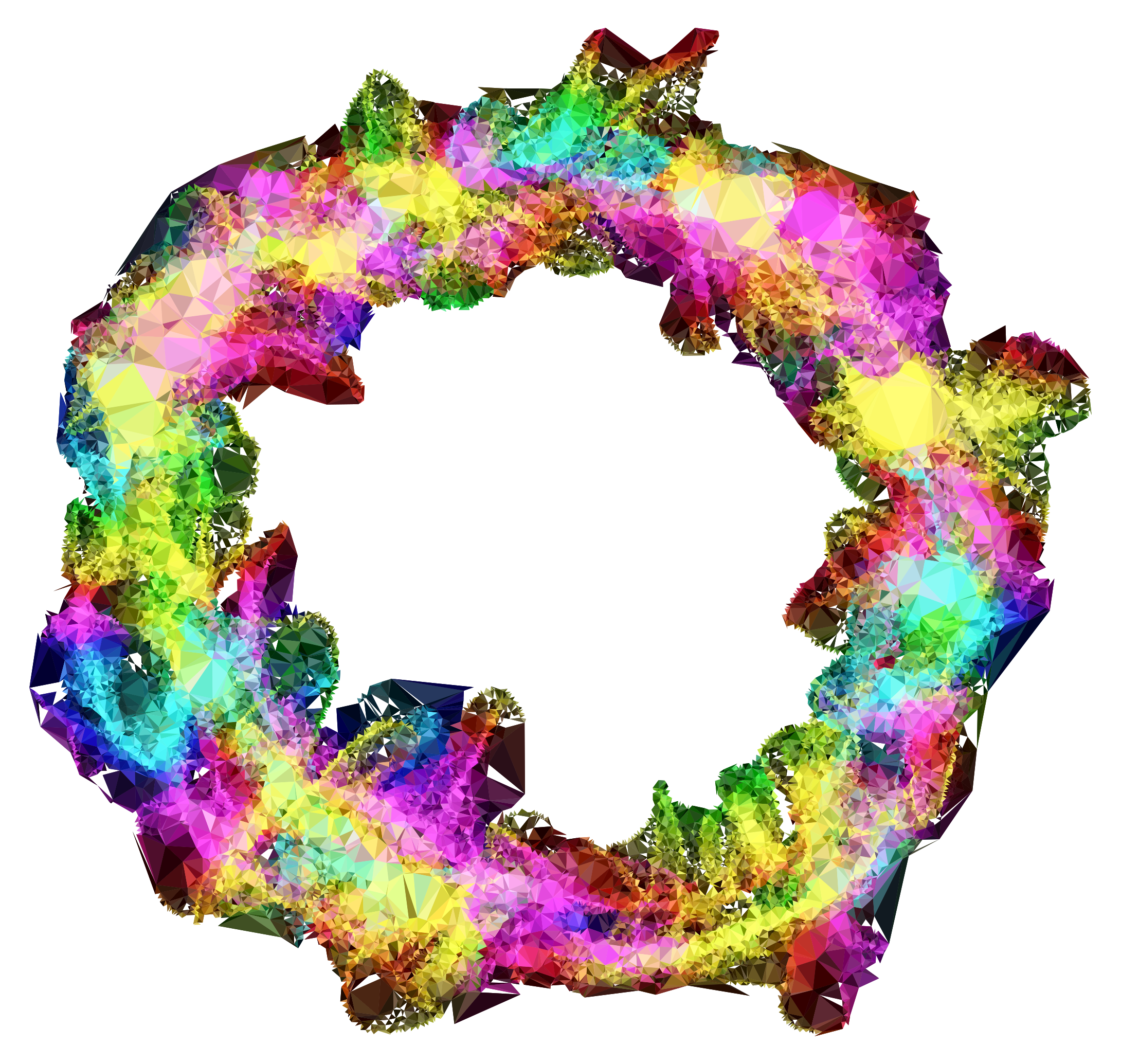 This features a large, colorful circle made up of various colored strips. These strips are arranged in such a way that they create an intricate and visually appealing pattern. The colors used in the circle include red, yellow, green, blue, purple, orange, and pink. The combination of these vibrant hues creates a striking contrast against each other, making the circle stand out as a unique piece of artwork.
