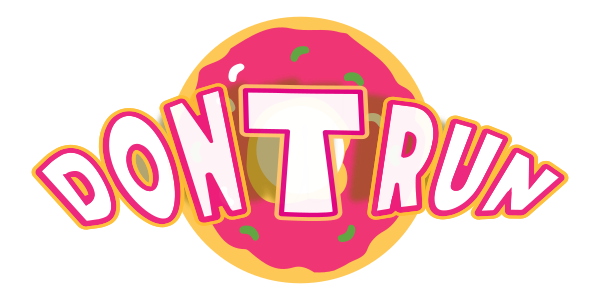 This features a large, colorful donut with the words "Don't Run" written in white letters on top of it. The text is outlined in red, making it stand out against the pink background of the donut. This playful and eye-catching design could be used for various purposes such as advertising or promoting a bakery or cafe.