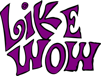 This features a purple and pink sign that says "Like Wow" in bold letters. The sign is written in a fun, hippie style reminiscent of the 1960s. The colors used for the text are predominantly purple with some pink accents, creating an eye-catching and vibrant appearance. This sign could be used to express excitement or surprise, possibly indicating that something is truly impressive or extraordinary.