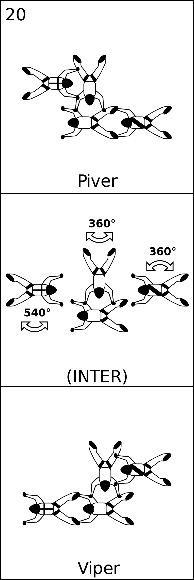 This displays a series of diagrams, each labeled with the name "Viper." These diagrams are likely related to the sport of Formation Skydiving. Each diagram features multiple small figures, possibly representing skydivers or other objects involved in the competition. The diagrams are arranged vertically and appear to be part of a larger collection of images or information about this particular sport.