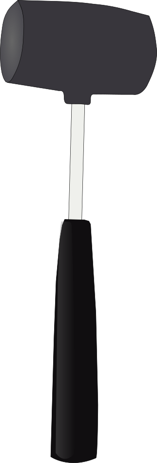 This features a black and white picture of a mallet, which is an object used for hitting or striking various surfaces. In this case, the mallet appears to be made from wood and has a handle on one end. It is positioned in front of a plain background that extends across the entire image. This simple yet effective composition highlights the mallet as the main subject, drawing attention to its design and purpose.