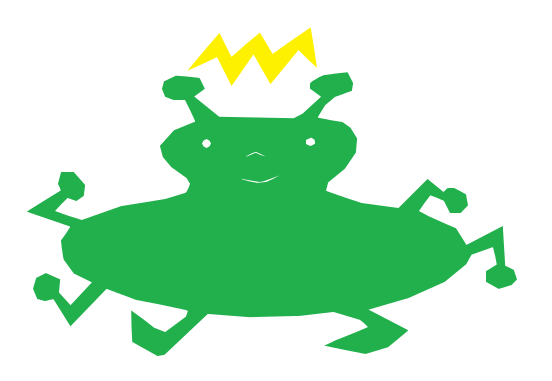 This features a green cartoon character with a yellow crown on its head. It appears to be an alien or a creature from another world, and it is smiling at the viewer. The character has four legs, two arms, and a large body that fills most of the frame. The drawing itself is in green and white colors, giving it a vibrant and playful appearance.