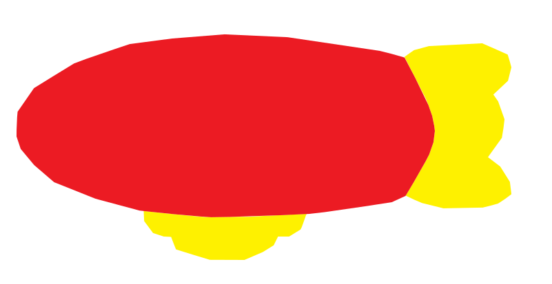 This features a red rocket with yellow fins, giving it an oval shape. It is the main focus of the picture and appears to be drawn in a childlike manner. The rocket's vibrant colors make it stand out against the background, which consists of a white surface. This artistic representation of a rocket could evoke feelings of excitement or curiosity for those who view it.