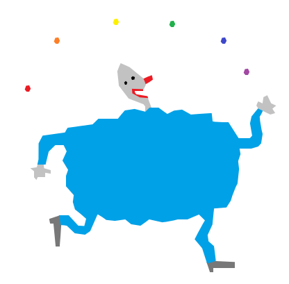 This features a cartoon character with a blue body and a face drawn on it. This character appears to be walking, as if it is dancing or moving across the screen. The drawing has a playful and whimsical appearance, making it an interesting visual element in the scene.