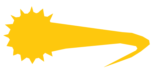 This features a yellow sun with a long tail, which is positioned in the upper left corner of the picture. The sun's rays extend outwards and create an interesting visual effect. In addition to the sun, there are two other objects present in the scene: a small triangle located near the center-left of the image and another smaller triangle on the right side. These triangles add depth and complexity to the overall composition of the picture.