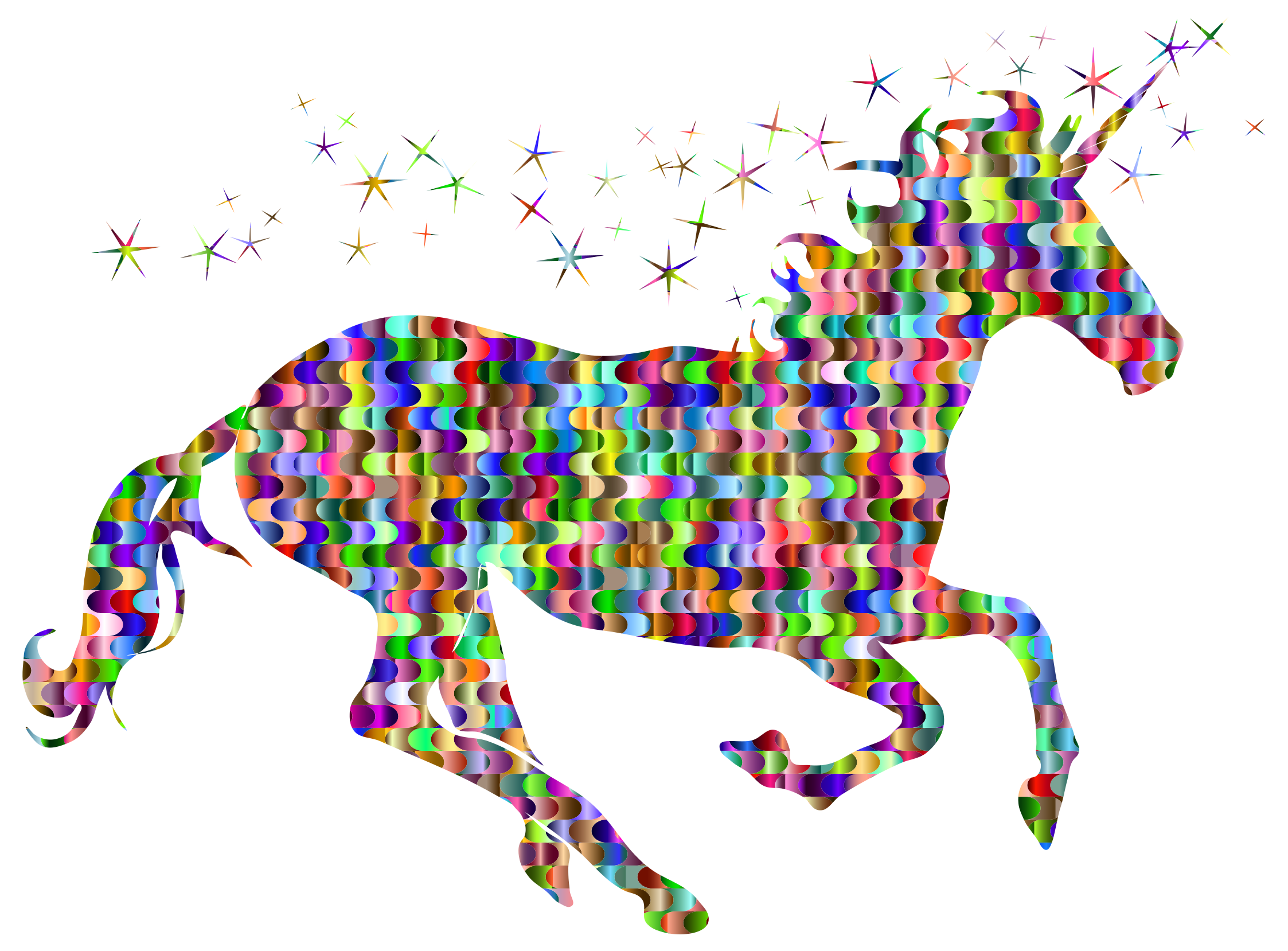 Tags: abstract, animal, art, chromatic, colorful, creature, fictional, geometric, horse, interlocking, mythical, prismatic, rainbow, unicorn, waves, sparkle, unicorn colorful