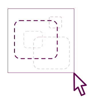 This features a square with a purple outline, which is being selected by a mouse pointer. The pointer has a black outline and is pointing towards the square, indicating that it is in the process of selecting or highlighting the shape. This could be part of an art project or a design element where shapes are being chosen for further use.