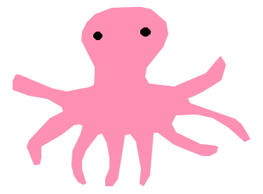 This features a pink octopus with big eyes, sitting on top of a white background. The octopus is the main focus of the picture and appears to be the only object in the scene. Its large eyes give it an expressive look as if it's staring directly at the viewer. The pink color of the octopus contrasts nicely with the white background, making it stand out even more.