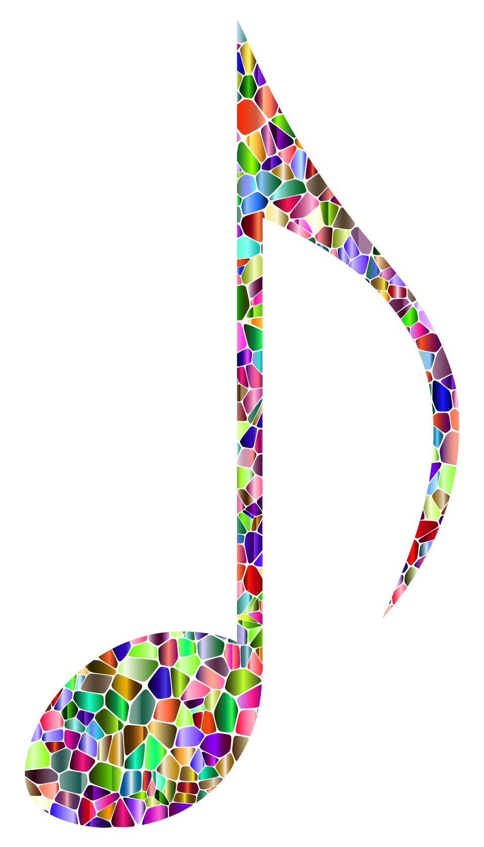 This features a colorful, abstract representation of a musical note. This unique artwork is composed of various colored shapes and patterns that create the appearance of a musician's instrument. The colors used in this piece are vibrant and eye-catching, making it an interesting visual display. The combination of different shapes and colors creates a dynamic and engaging composition that captures the essence of music while adding a creative twist to the traditional representation of musical notes.