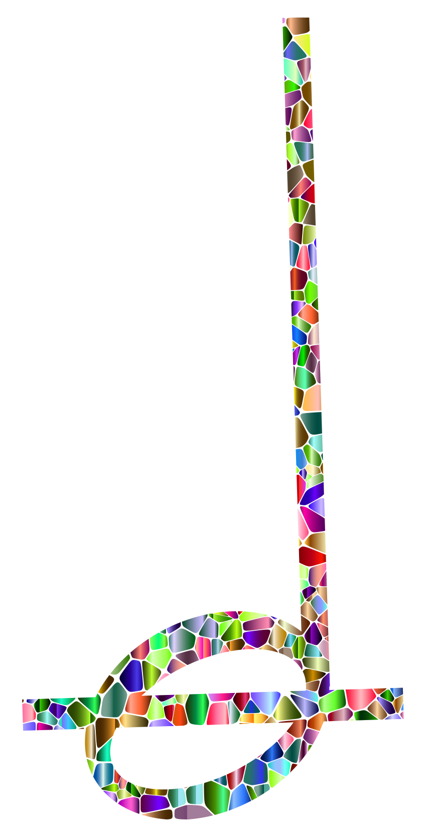 This features a colorful and artistic representation of an open music note, likely a D. This unique design is created by combining various colored shapes, giving it a visually appealing appearance. The different colors and shapes are arranged in such a way that they form the outline of the musical note, making it stand out as a creative piece of art. The combination of these elements creates an interesting visual effect, showcasing the artist's skill in combining various shapes to create a cohesive design.