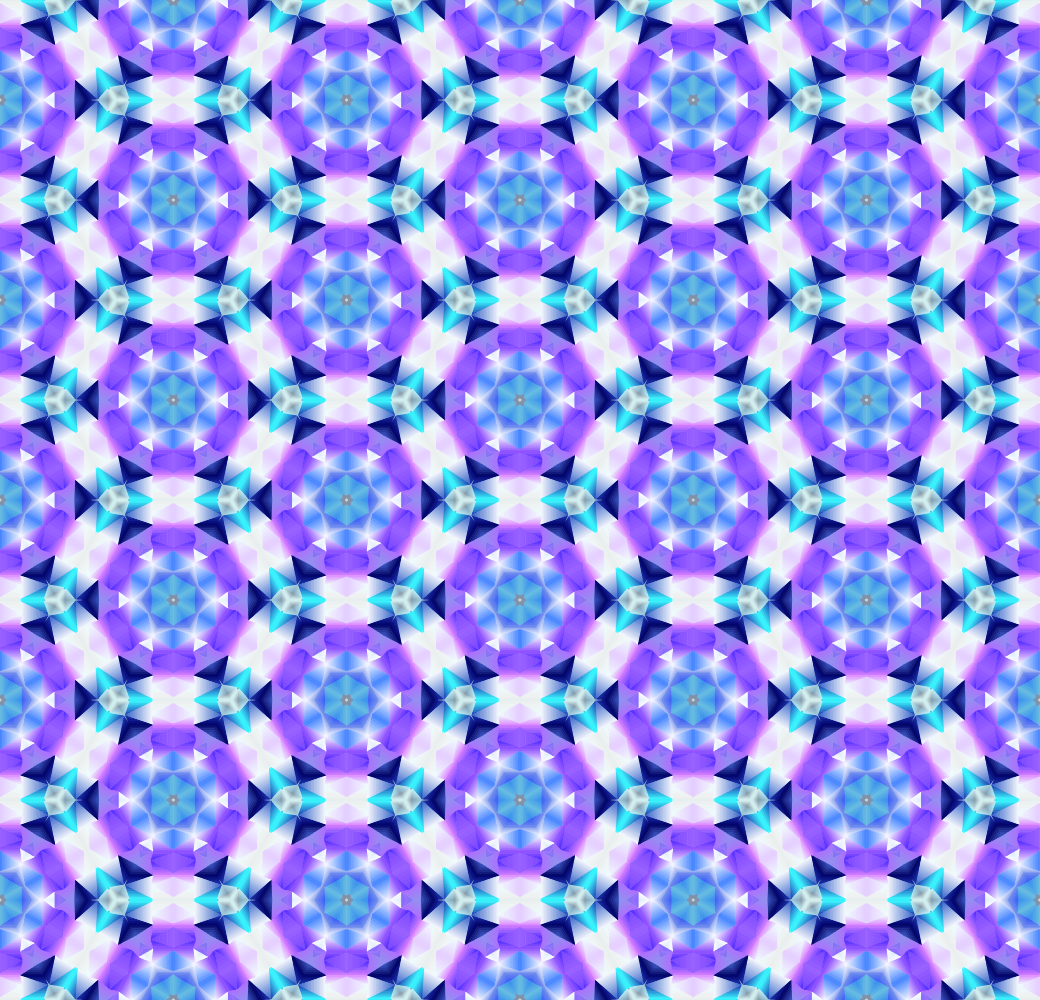This features a purple and blue geometric pattern with a mix of circles, stars, and diamonds. The design is seamless, creating an illusion of continuity throughout the entire image. The color scheme consists of various shades of both purple and blue, which are interspersed in a visually appealing manner. This pattern can be used for decorative purposes or as a background for other designs.