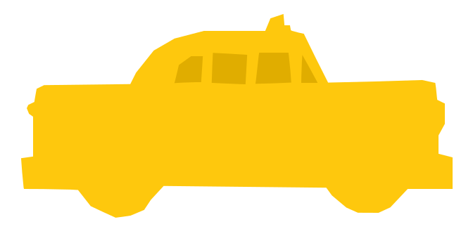 This features a yellow taxi cab, which is the main focus of the scene. It appears to be an illustration or cartoon-like representation of a vehicle, with its distinctive shape and color. The taxi is positioned in the center of the image, occupying most of the frame. There are no other objects or elements visible in the picture, making it a simple yet striking visual composition.