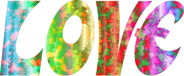 This features a colorful and artistic display of the word "love" in various colors. The letters are arranged in an eye-catching manner, with each letter being colored differently to create a visually appealing effect. This creative presentation of the word love gives it a unique and vibrant appearance that stands out from typical typography.