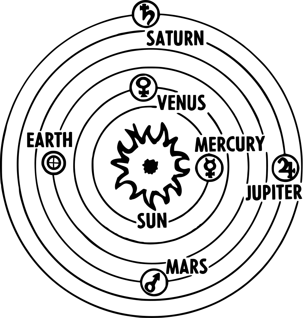 This is a black and white diagram of the solar system, featuring various planets and their positions relative to each other. The planets are labeled with their names, including Earth, Mars, Jupiter, Venus, Saturn, Mercury, and Neptune. The diagram also includes the zodiac signs, which are represented by symbols such as a sun, moon, and stars. The solar system is depicted in a circular format, with each planet's position marked on the circumference of the circle. The planets are arranged in a way that shows their relative distances from one another, providing an accurate representation of the solar system's layout. This diagram serves as a visual aid for understanding and appreciating the vastness and complexity of our universe.