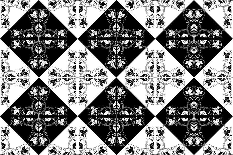 Tags: black and white, checkered, diamond pattern, tiles floral