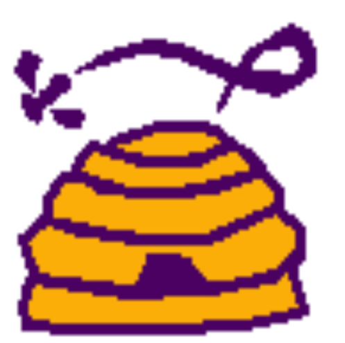 This features a yellow honeycomb with a purple border. Inside the honeycomb, there is a bee symbol that appears to be made of yellow and orange colors. This symbol is placed in the center of the honeycomb, creating an interesting visual effect. The overall design gives off a sense of warmth and natural beauty, making it an appealing image for those who appreciate nature or are interested in bees and their habitats.