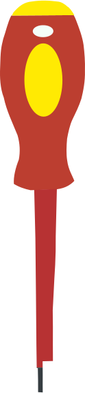 This features a red screwdriver with a yellow handle, standing upright against a brown background. It appears to be an illustration or a graphic design element, possibly used in a brochure or other promotional material. The screwdriver's vibrant color and contrasting yellow handle make it stand out against the neutral-toned backdrop, drawing attention to its presence within the image.