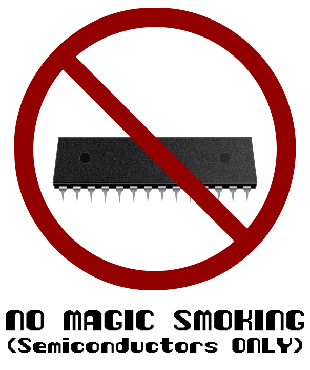 Tags: chip, computer, cooling, electronic, fan, heatsink, integrated circuit, joke, metaphor, overclock, parody, request completed, smoke, smoking, speed, no magic smoking, no magic smoking semiconductors only