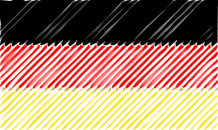 This features a black and white drawing of the German flag. The flag is composed of horizontal red, yellow, and green stripes, with the red stripe being on top. The flag's design is simple yet striking, making it an iconic symbol of Germany. The drawing captures the essence of the flag while maintaining a minimalist approach to its representation.