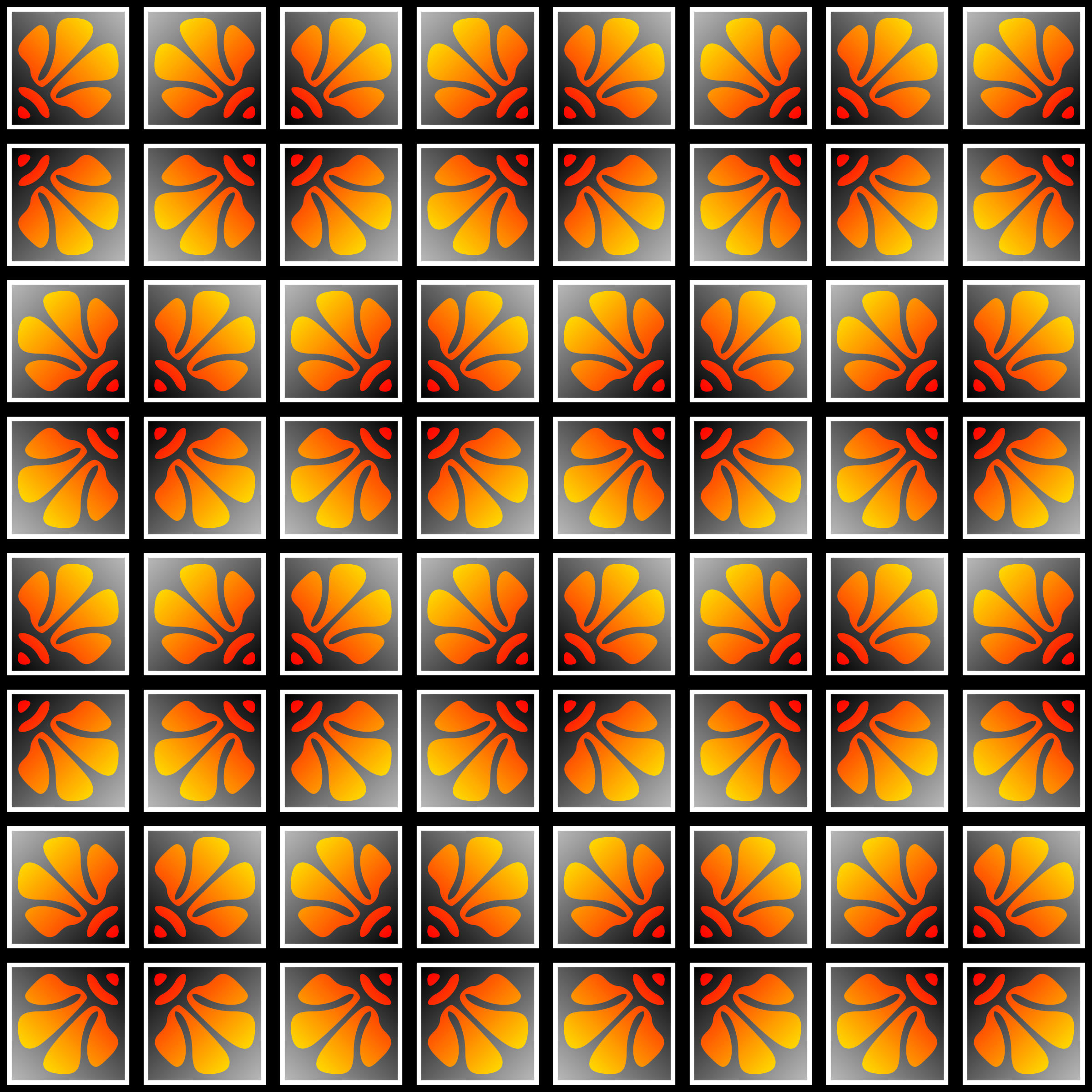 This features a pattern of orange tiles arranged in a square formation. Each tile has an orange flower design in the center, creating a visually appealing and cohesive look. The tiles are placed closely together, filling up most of the frame with their vibrant colors and intricate patterns. This arrangement creates a sense of depth and interest, making it an attractive and eye-catching display.