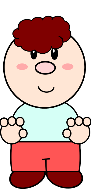 This features a cartoon character, specifically a little boy with red pants and a white shirt. He is standing in front of a brown background, giving the impression that he is posing for a picture. The character has a smiling expression on his face, adding to the cheerful atmosphere of the scene.