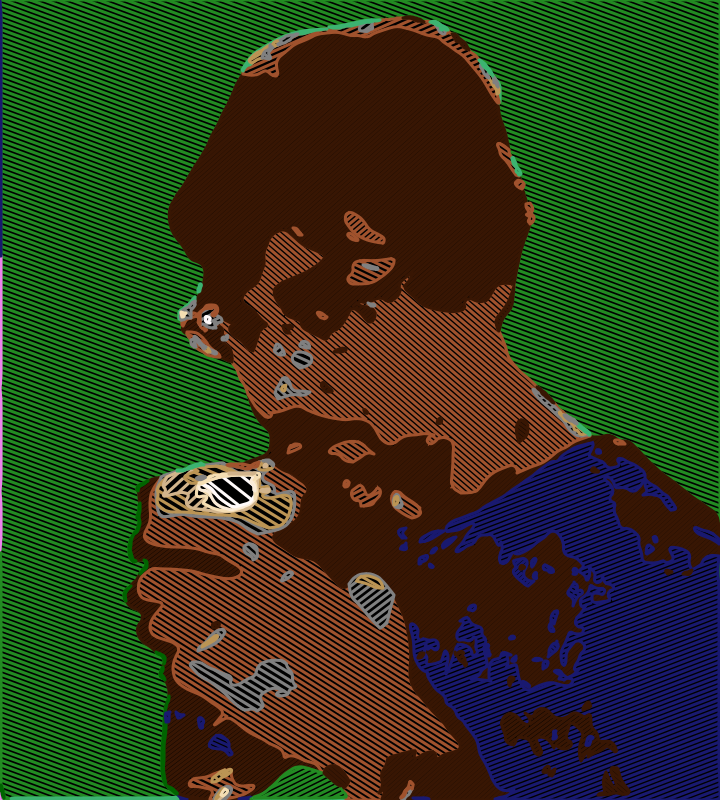 This features a man wearing glasses, holding a cup in his hand. He appears to be looking down at the cup while standing outdoors. The scene is captured in a colorful and artistic manner, with the man's face being depicted as a green and brown hue. The cup he holds is also colored, adding an interesting visual element to the image.