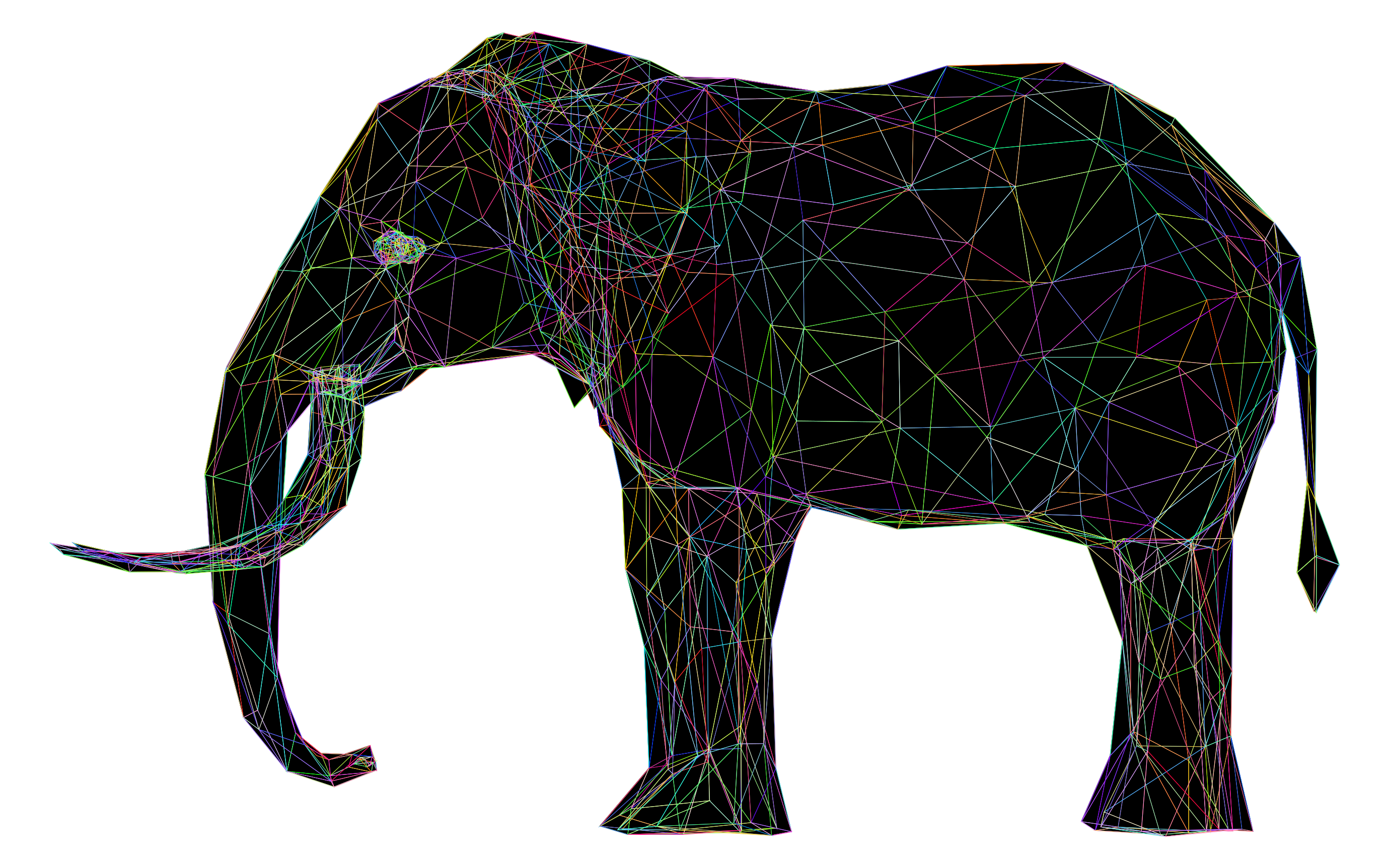 Tags: 3d, abstract, africa, animal, art, asia, chromatic, colorful, elephant, flat shaded, geometric, grayscale, low poly, model, monochrome, pachyderm, polygon, prismatic, rainbow, wireframe