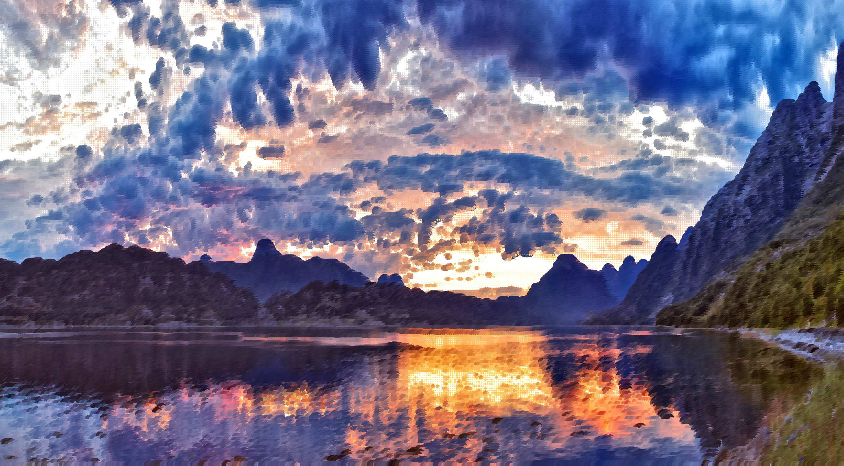 Tags: abstract, art, circle, dot, forest, geometric, lake, landscape, mosaic, mountain, nature, photograph, reflection, source pixabay, surreal, water