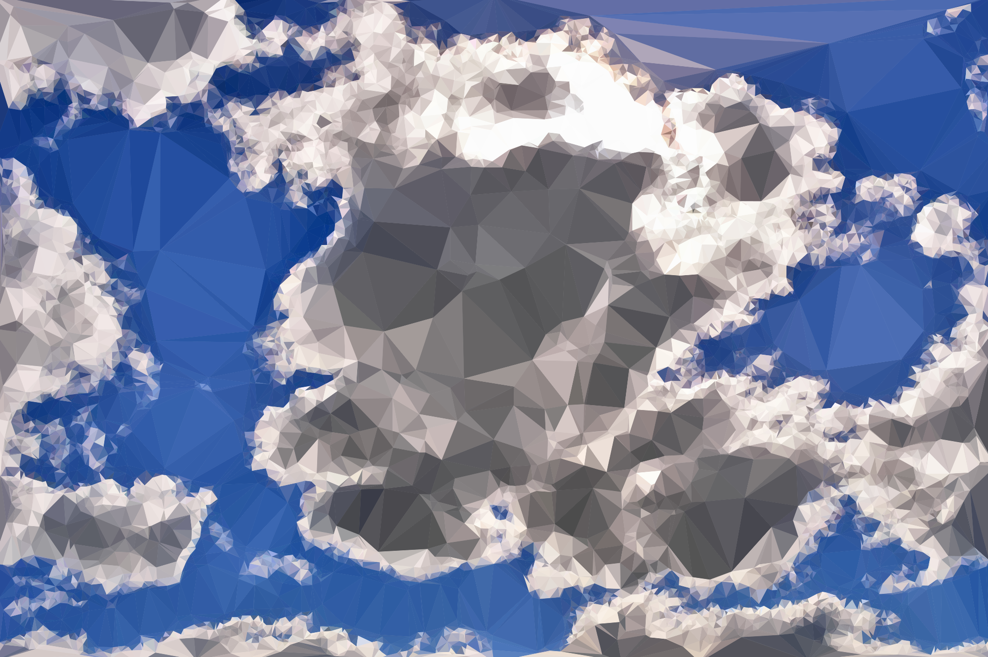 Tags: abstract, art, blue sky, cloud, cloudscape, geometric, landscape, low poly, mosaic, nature, photograph, polygon, source pixabay, triangle, weather