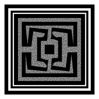 This features a black and white geometric pattern, which appears to be an intricate design. It is reminiscent of a maze or a puzzle, with multiple lines converging in the center. The pattern has a somewhat abstract appearance, giving it a unique visual appeal. The overall composition of the image creates a sense of depth and complexity, making it an interesting focal point for viewers.