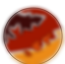 This features a round, red object with an orange and yellow hue. It appears to be a blurry or distorted picture of the Earth, possibly due to its colorful appearance. The Earth is depicted as having a bat-like shape, giving it a unique and interesting look. This artistic representation of our planet adds a creative touch to the image.