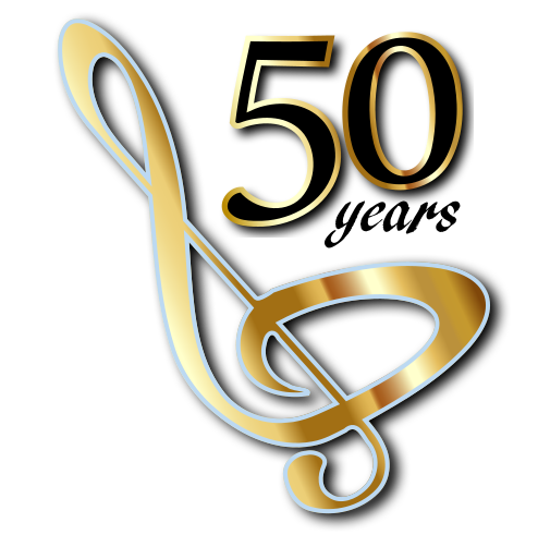 This features a golden music note with the number fifty written above it. This signifies that the musician has been playing for 50 years, celebrating their milestone anniversary in the industry. The gold color of the note adds an elegant touch to the design, making it stand out against any background.