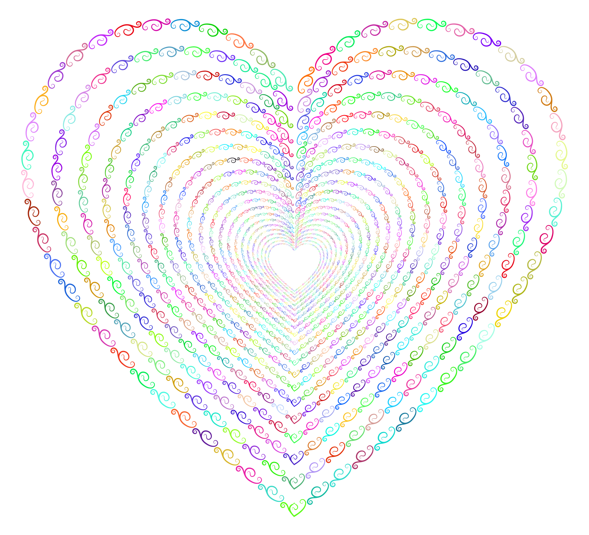 This features a large, colorful heart made up of many smaller hearts. These smaller hearts are arranged in various positions and orientations throughout the larger heart, creating an intricate pattern. The colors used for these smaller hearts include red, green, blue, yellow, orange, purple, pink, and white. The overall effect is a visually striking and vibrant display of love and affection.