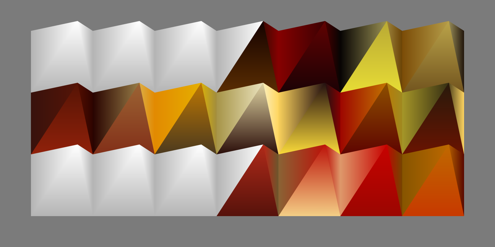 This features a colorful pattern of red, yellow and brown squares. These squares are arranged in a way that creates an interesting visual effect. The colors are vibrant and the patterns create a sense of depth and dimension to the scene. The arrangement of these squares gives off a feeling of a mosaic or a tiled surface, which adds to the overall artistic appeal of the image.