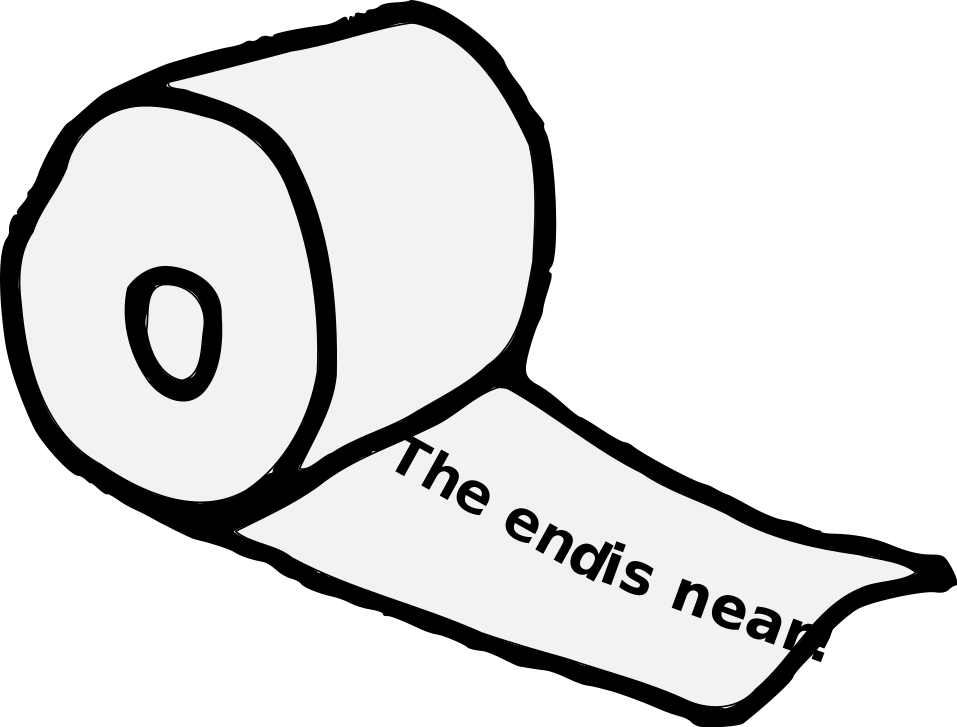 This features a roll of toilet paper with the words "The Ends Near" written on it. The toilet paper is in the shape of a large, unrolled sheet and appears to be made up of several smaller sheets that have been cut out and arranged together. The overall appearance gives off a comical vibe, as if someone has created a humorous message using toilet paper.