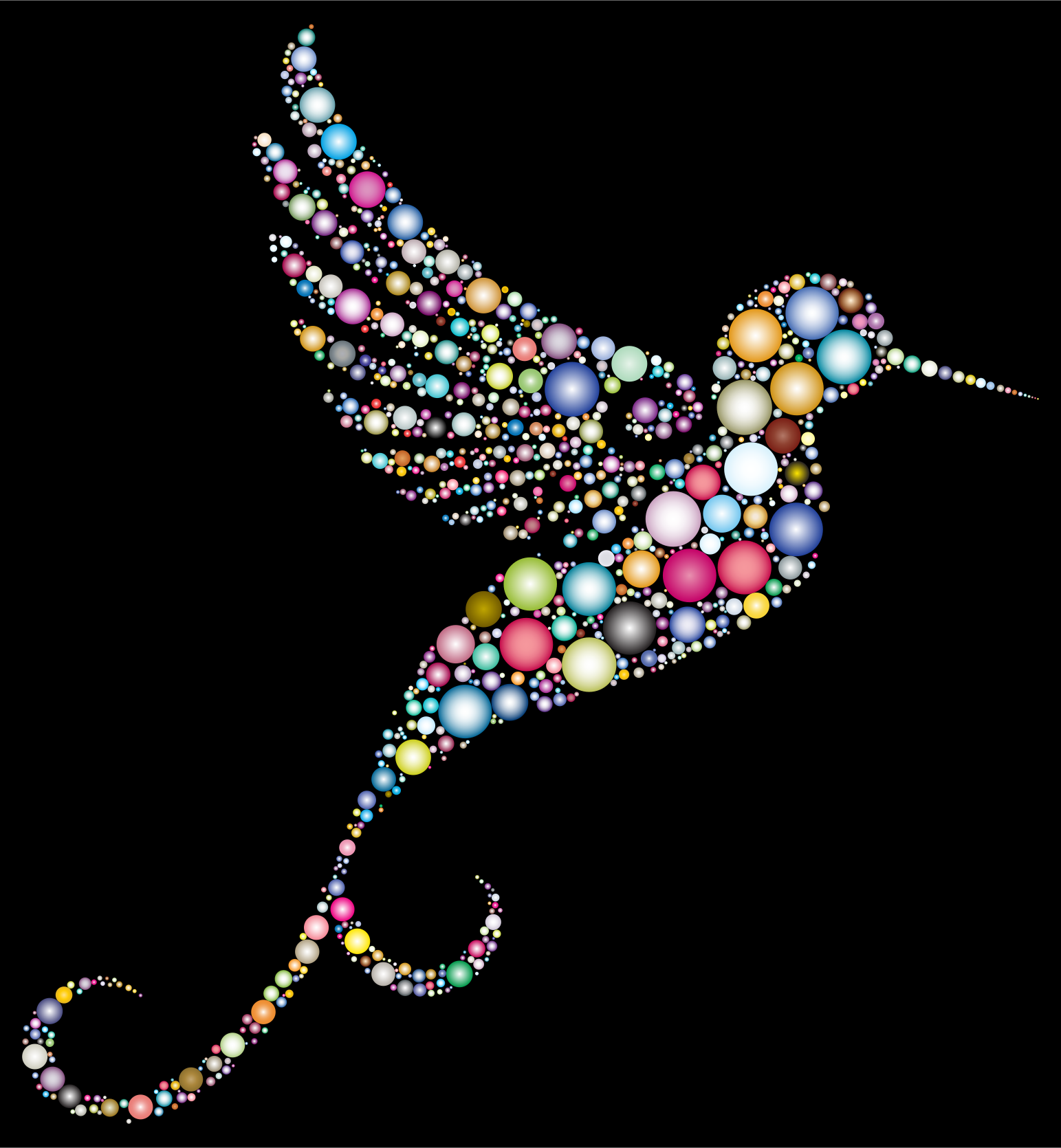 This features a beautifully crafted hummingbird made out of colorful dots. The bird is depicted with its wings spread wide, showcasing the intricate details and vibrant colors of each dot. The beak of the hummingbird is long and sharp, adding to the realistic appearance of the image. This artwork captures the essence of a hummingbird in flight, making it an eye-catching piece for any viewer.