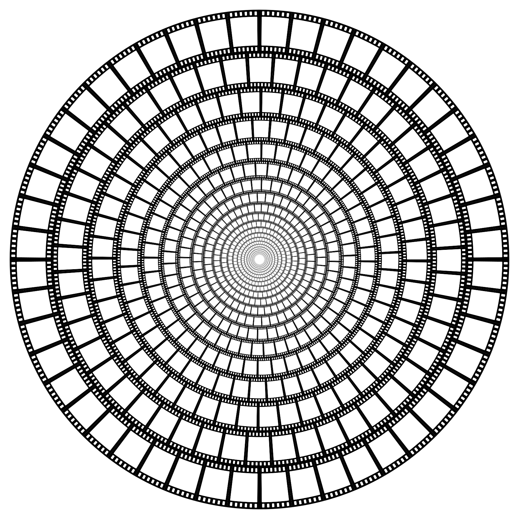 This features a large, circular pattern made up of many small circles. Each circle is connected to the others by lines that create an intricate and visually appealing design. The pattern resembles a film reel or a spider web, with each individual circle representing a frame in the larger picture. This unique design creates a sense of depth and complexity, making it an interesting focal point for viewers.