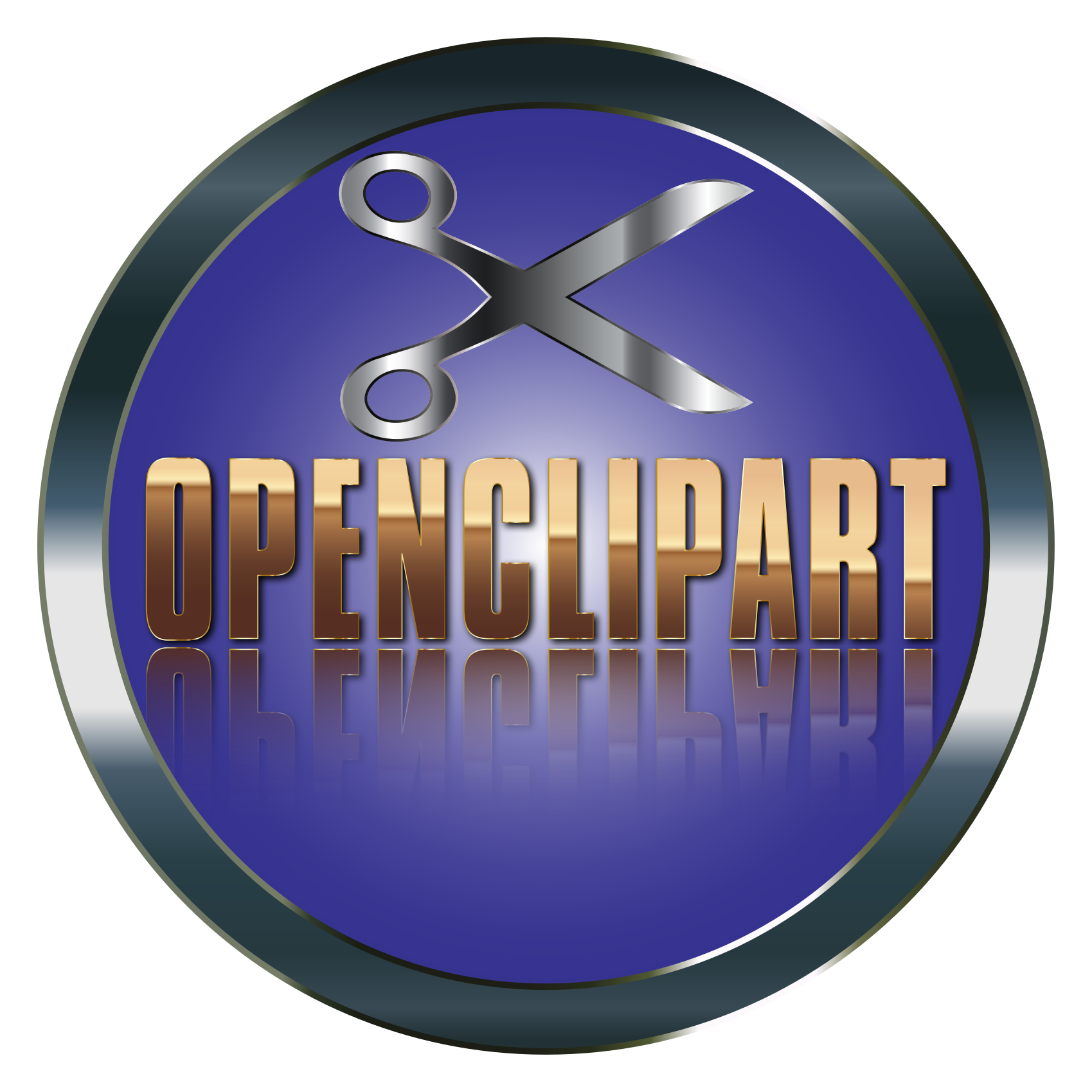 This features a blue circle with the word "Openclipart" written in gold letters. In the center of the circle, there is an illustration of scissors, which are prominently displayed. The overall design gives off a professional and clean appearance.