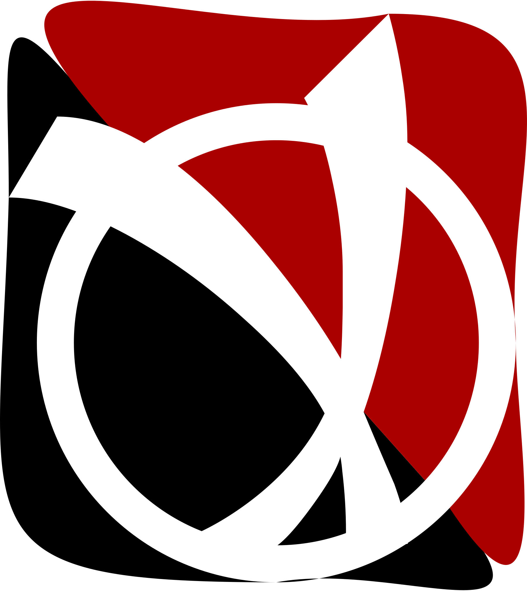 This features a red and black square with an odd shape, resembling a circle or a v. This unique design is likely the logo for a company or organization. The colors of the square are predominantly red and black, creating a striking contrast against each other. The overall appearance of the square gives it a modern and eye-catching look.