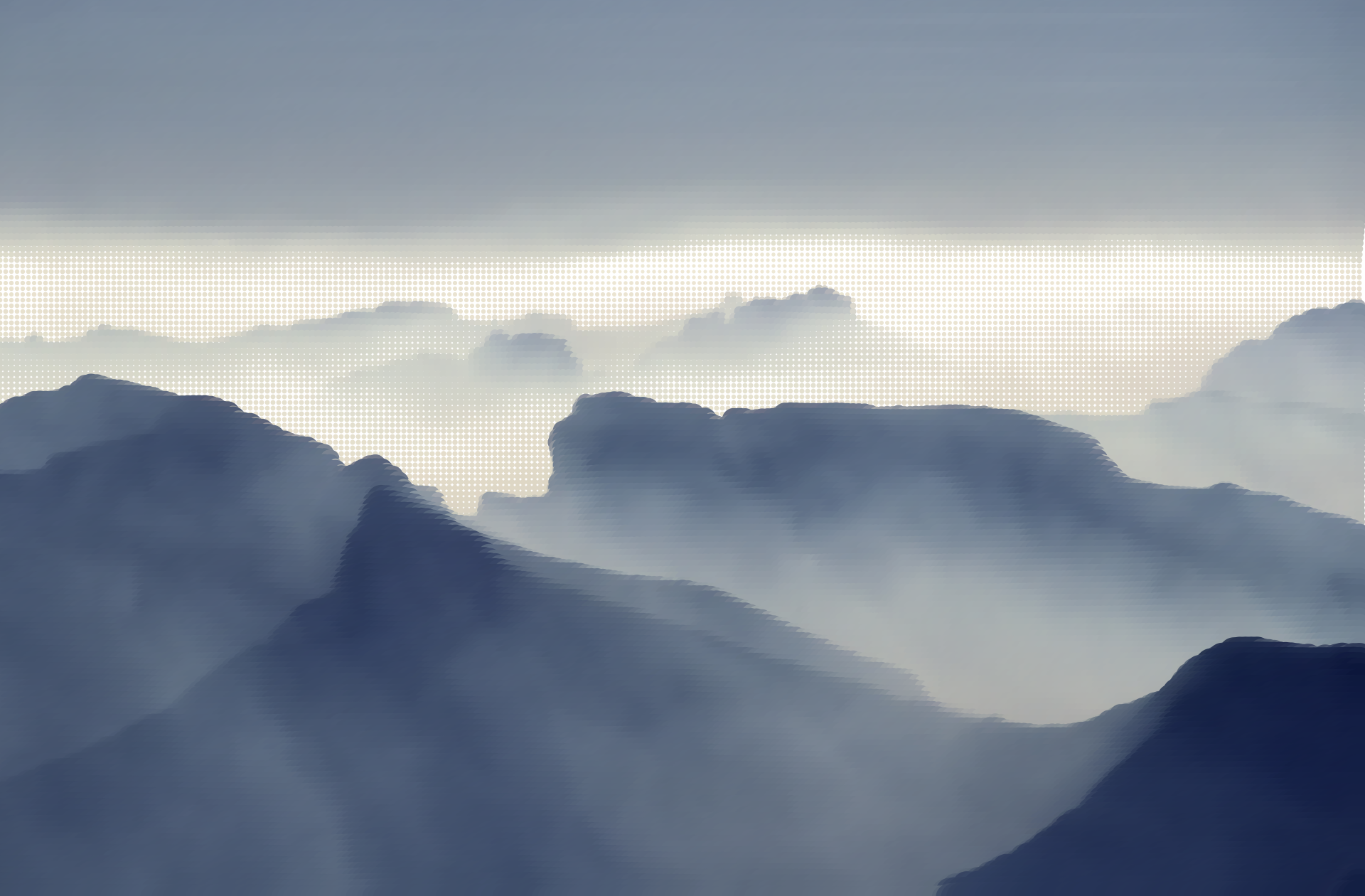 This features a mountain range with clouds covering the peaks. The mountains are shrouded in fog, giving them an ethereal appearance. The sky above the mountains is filled with clouds, creating a dramatic backdrop for the scene. The overall atmosphere of the image is serene and captivating, as it showcases the beauty of nature's power.