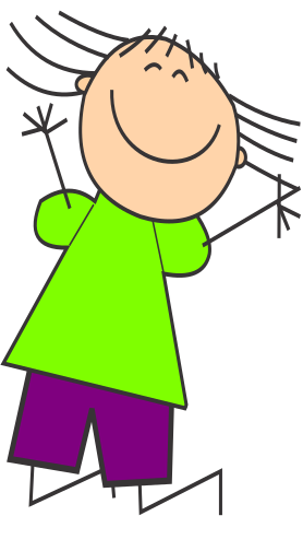 This features a happy little girl with her arms raised in the air, wearing a green shirt. She appears to be jumping or dancing, possibly celebrating something or simply enjoying herself. Her purple shorts add a pop of color to the scene. The overall atmosphere is cheerful and energetic, as the young girl embraces her joyful expression.