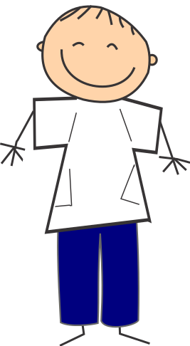 This features a happy cartoon character, possibly a young boy or a man with a smile on his face. He is wearing a white shirt and blue jeans, giving him a casual yet cheerful appearance. The character appears to be standing in front of a wall, which serves as the background for this delightful illustration.
